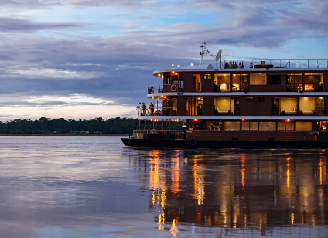 随后,旅程将深入南美大陆的绿色心脏——亚马逊雨林。在这里,您将乘坐奢华探险河轮,穿行于纳波河流域的原始密林之间,近距离感受万物共生的自然节奏,倾听热带雨林中隐秘的呼吸。鸟鸣、虫语、细雨与晨雾交织成一幅幅生动的生态画卷,唤醒你与自然最本能的连接。